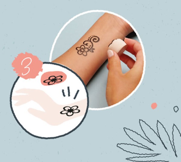 Before stamping, it is best to clean the skin with alcohol so that the area is free of grease. For best results do not place the tattoo in skin folds or in places where clothes rub.