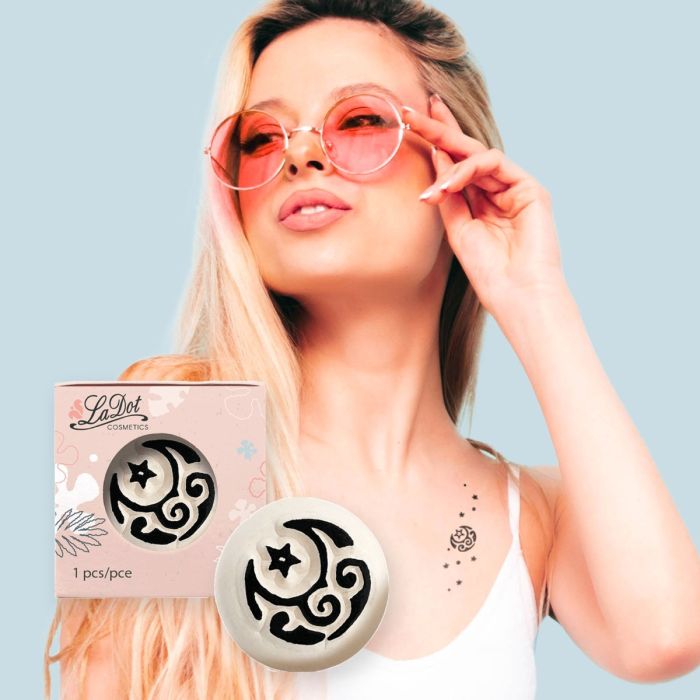 LaDot Temporary Tattoo Stamp– Easy–to–Use Reusable Ceramic Skin Stamp for Creating Custom Temporary Tattoos – Fun Body Art Tool for Parties, Events, and Festivals (Moon, Small)